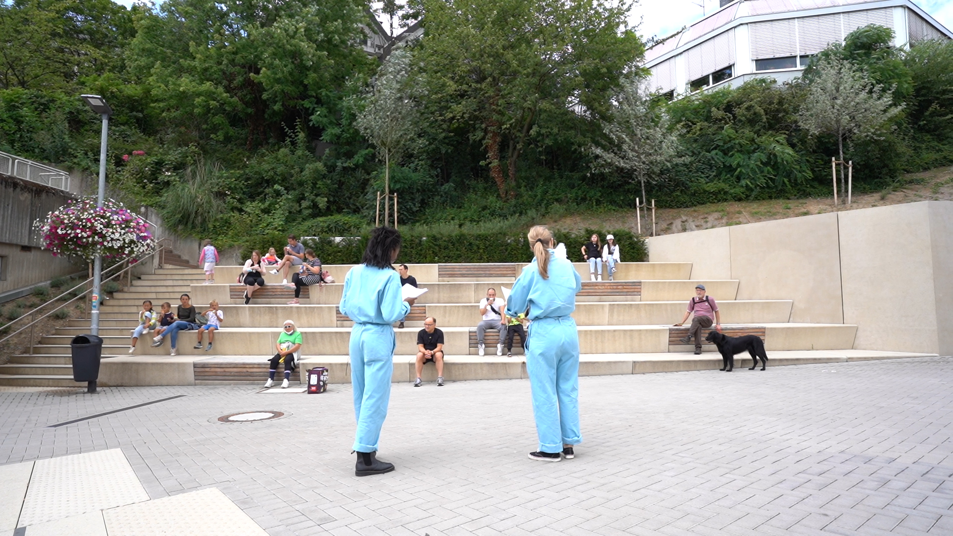 Im Sommer 2020 sammelte das Team von mythen der moderne Geschichten der Bürger:innen auf den Marktplätzen in Bergisch Gladbach und Wuppertal ein. Die Umarbeitung des Formats, das für den Innenraum, also für die Ratssäle der zwei Städte gedacht war, hin zu einer Performance im Freien war zwingend.
